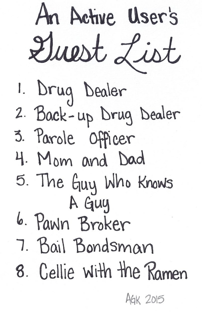 Not long after, I woke up one morning in withdraws. I was dizzy and shaking. It felt like a worse version of the flu. I knew if I drank something, I would feel better, but I could not think of one person in the world who would bring me something to drink. But more than that, there is not one person in the world who would bring me anything: not a cup of soup, a blanket, or a kind word.
